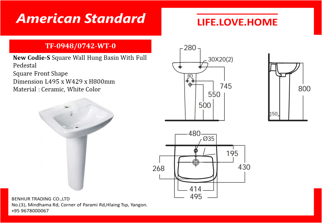 အရောင် : အဖြူရောင် အတိုင်းအတာ- W 430X L 495 x H800 mm