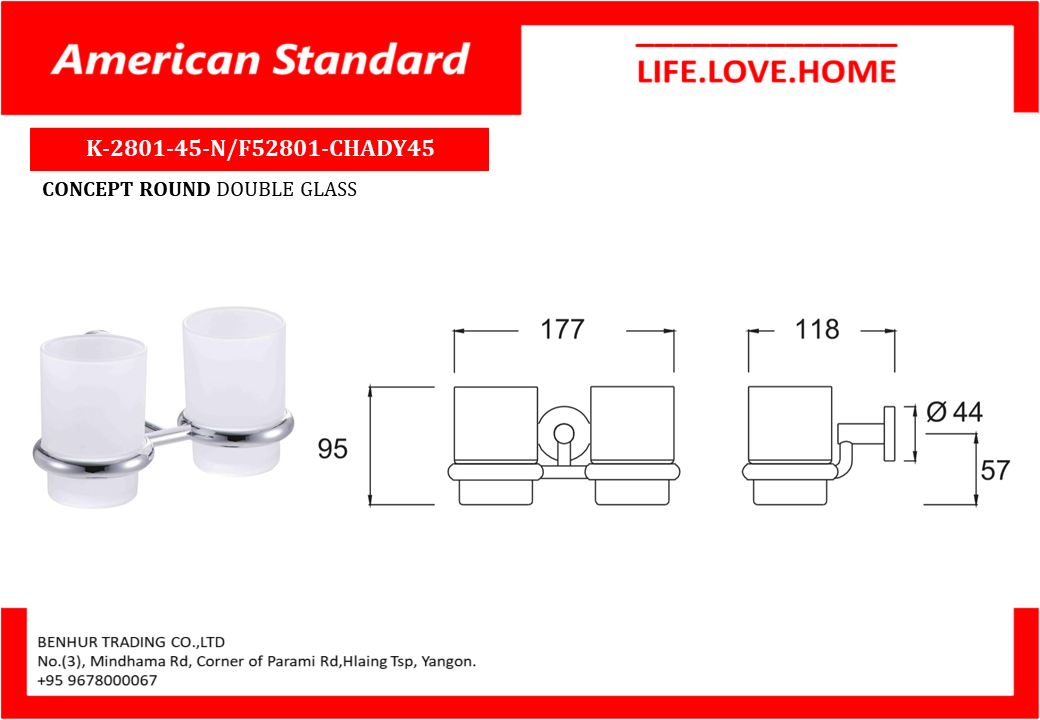 American Standard Concept Round-Double Glass Holder (K-2801-45-N)