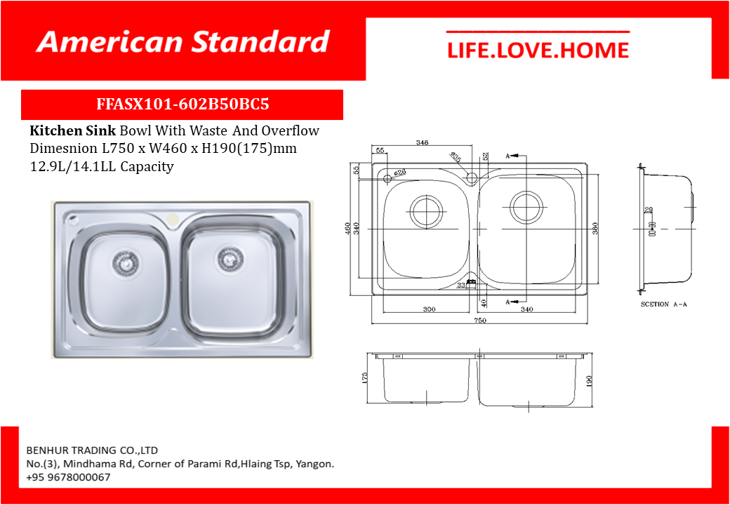 အတိုင်းအတာ (LxWxH) : 750x460x190(175)mm