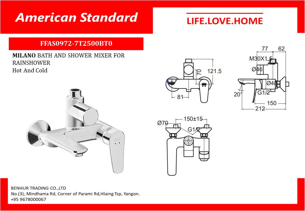 မိုးရေပူနှင့်အအေးအတွက် အမေရိကန်စံမီမီနိုရေချိုးနှင့် ရေချိုးဖျော်စက် (FFAS0972-7T2500BT0)