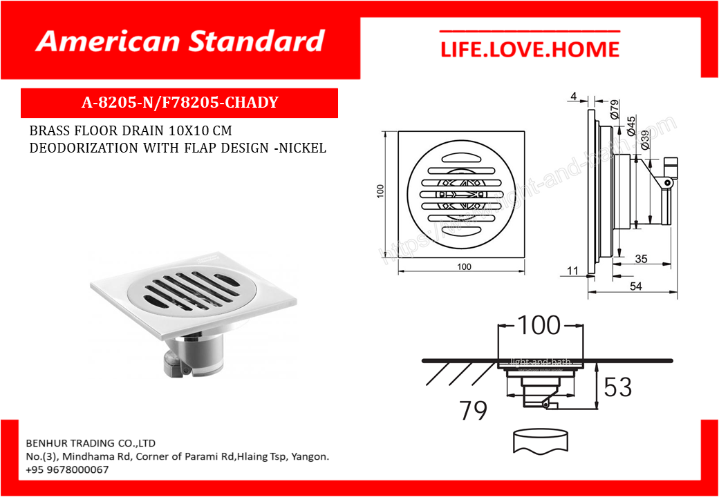 American Standard Square Deodorizing Screen 10 x 10 cm၊ Chrome Plated Brass (A-8205-N)