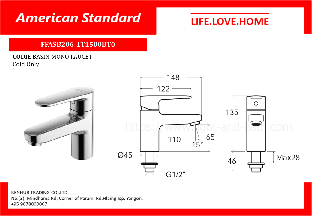 American Standard Codie Basin Mono Faucet Cold Only (FFASB206-1T1500BT0)