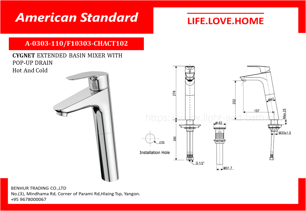 ခေါင်းရေချိုးခြင်းအတွက် American Standard EasySET (FFAS0926-709500BC0)